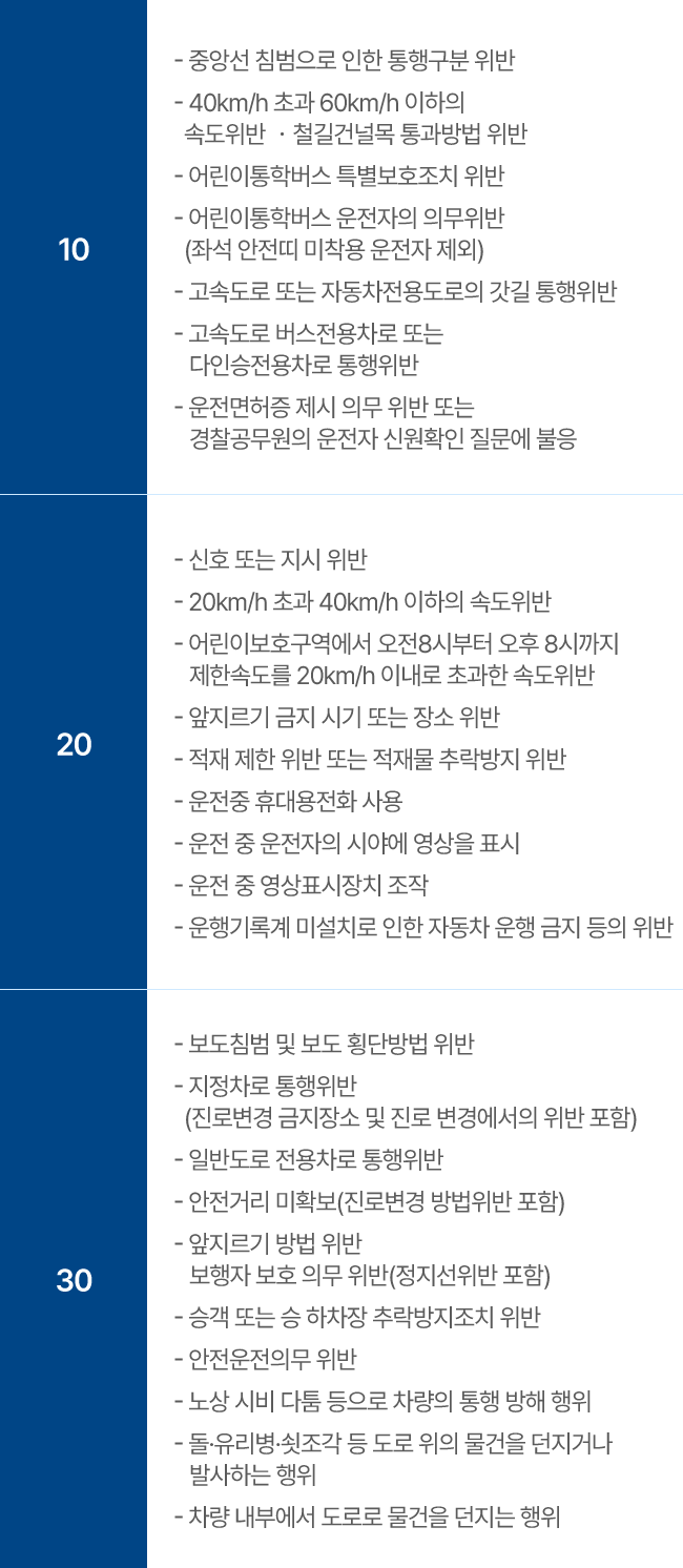 운전면허 벌점기준